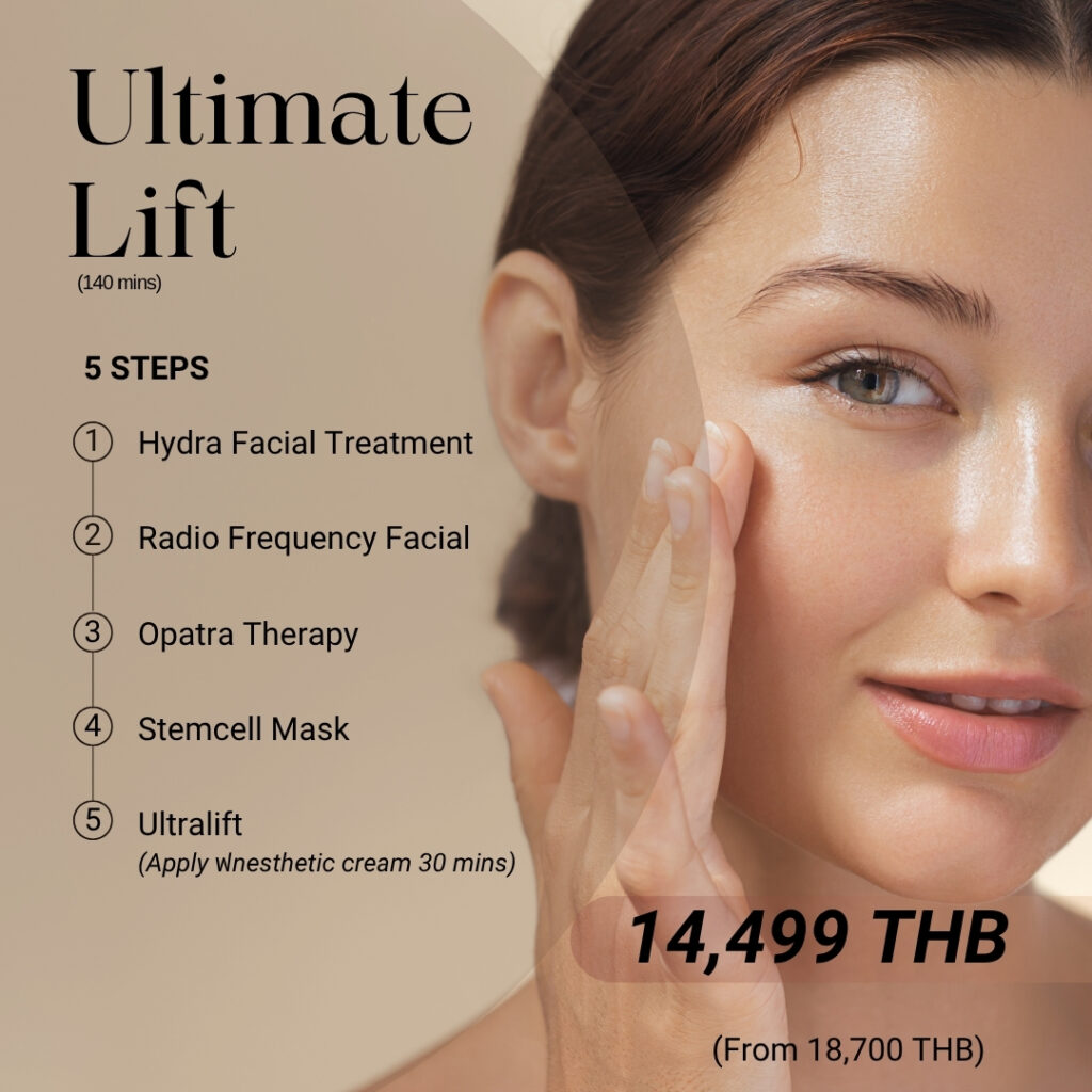 This powerful combination of Hydra Facial Treatment, Facial RF, Opatra, 24K Gold Mask, and Ultraformer III delivers both instant glow and long-term lifting results — perfect for anyone looking to deeply rejuvenate and contour the face.